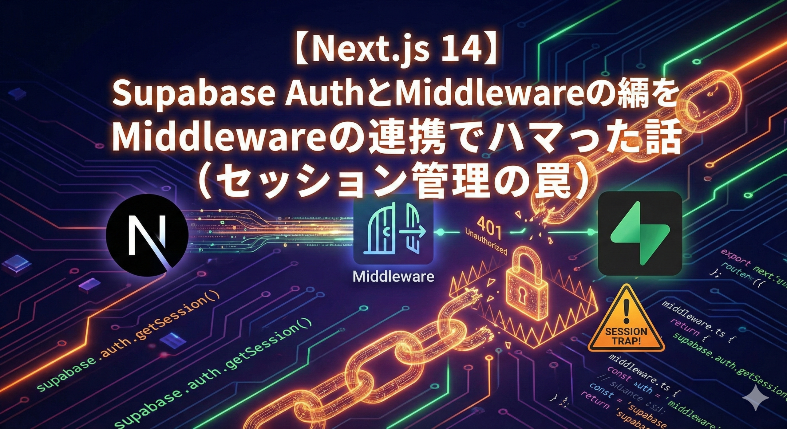 しかし、開発初期の「ユーザー認証(ログイン機能)」の実装で、想定以上に時間を溶かしてしまいました。 今回は、備忘録も兼ねて「Next.jsのMiddlewareにおけるSupabaseセッション管理のハマりポイントと解決策」を共有します。